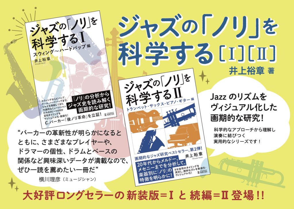 早いお店ではすでに並び始めた『ジャズの「ノリ」を科学する』ⅠとⅡですが、POPとパネルをご用意しました♪
